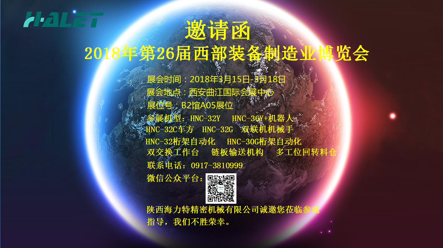第二十六屆西部裝備制造業博覽會3月15日——3月18日在西安曲江國際會展中心隆重召開。此次展會陜西海力特精密機械有限公司將攜HNC-32Y,HNC-36Y精密車銑復合機床,HNC-32G HNC-32C車方 雙聯自動化機床,HNC-30G精密排刀車床,HNC-500Z桁架機……